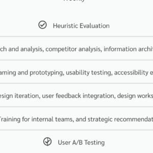 Wireframing and prototyping, usability testing, accessibility evaluation,